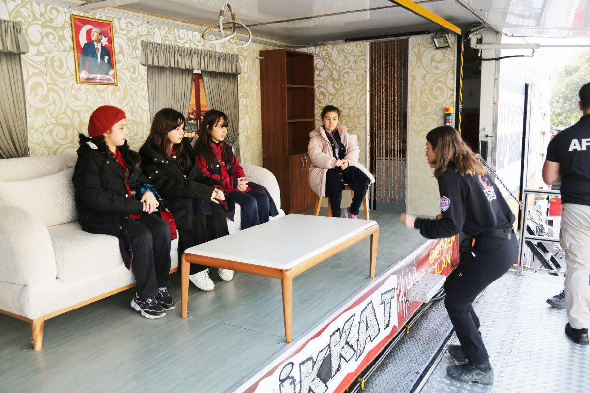 Deprem öncesi, sırası ve sonrasında yapılması gereken doğru davranışları öğretmek ve afet bilincini artırmak amacıyla Eyüpsultan’a gelen simülasyon tırında vatandaşlar, 7.2 şiddetindeki deprem anını gerçekçi bir ortamda birebir deneyimledi.