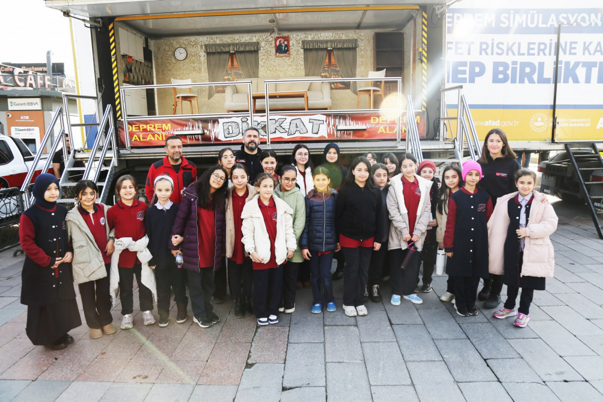 Vatandaşlara yönelik afet farkındalık ve bilinçlendirme çalışmaları kapsamında AFAD Deprem Simülasyon Tırı, Eyüpsultan Meydanı’nda Mado önünde vatandaşlarla buluştu.