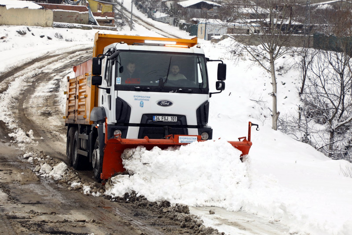 Eyüpsultan Belediyesi karla mücadele ekipleri gece saatlerinde başlayan yoğun kar yağışı ile birlikte ilçe genelinde 29 mahallede 52 araç ve 118 personelle görev aldı.