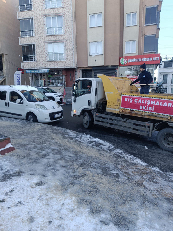 Karla mücadele çalışmaları kapsamında ekipler, iki vardiya halinde 64 sokakta 24 araç ve 110 personelle anlık müdahalelerde bulundu. İlçe genelinde yürütülen kar küreme çalışmalarına ek olarak, 535 cadde ve sokakta 320 tonu aşkın tuzlama çalışması yapılarak buzlanmanın önüne geçildi.
