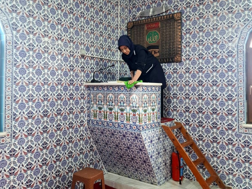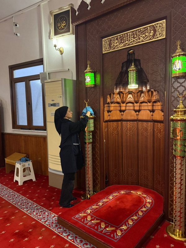 Cami içerisinde bulunan aydınlatma sistemi ve avizeler de ekipler tarafından temizlenerek bakımları yapıldı.