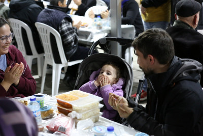 Kurulan gönül sofralarında 7’den 77’ye herkes yan yana oturuyor; çocukların neşesi, büyüklerin duası aynı sofrada birleşiyor. Aynı ekmeği bölüşen, aynı lokmayı paylaşan vatandaşlar, Ramazan Ayı’nın kardeşlik ve dayanışma ruhunu hep birlikte hissediyor.