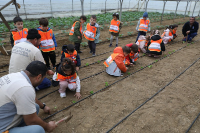 Minik öğrencilere öncelikle marul ekimi yaptırıldı. Öğretmenleri ve uzman personel gözetiminde yapılan etkinlikte her bir öğrenci kendilerine verilen marulları büyük bir dikkatle diktiler.