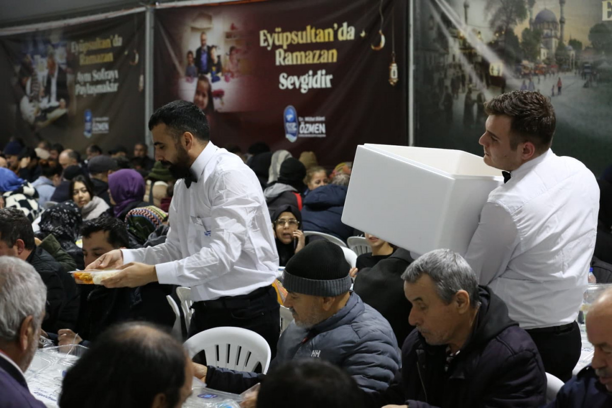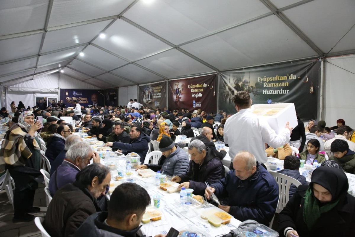 Eyüpsultan Belediyesi, oruçlarını Eyüsultan’da açmak için Türkiye’nin dört bir yanından gelen misafirlerini en güzel şekilde ağırlamak için Sultan Reşat Türbesi önünde Bahariye Caddesi üzerine kurulan etkinlik çadırında her gün 1000 kişilik iftar yemeği veriyor. Kurulan gönül sofralarında vatandaşlar aynı lokmayı paylaşarak Ramazan’ın bereketini birlikte yaşıyor.