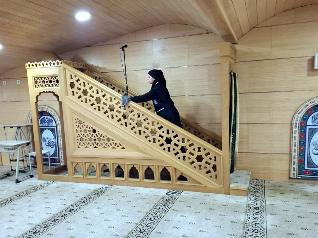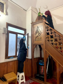 Cami içerisinde bulunan aydınlatma sistemi ve avizeler de ekipler tarafından temizlenerek bakımları yapıldı.