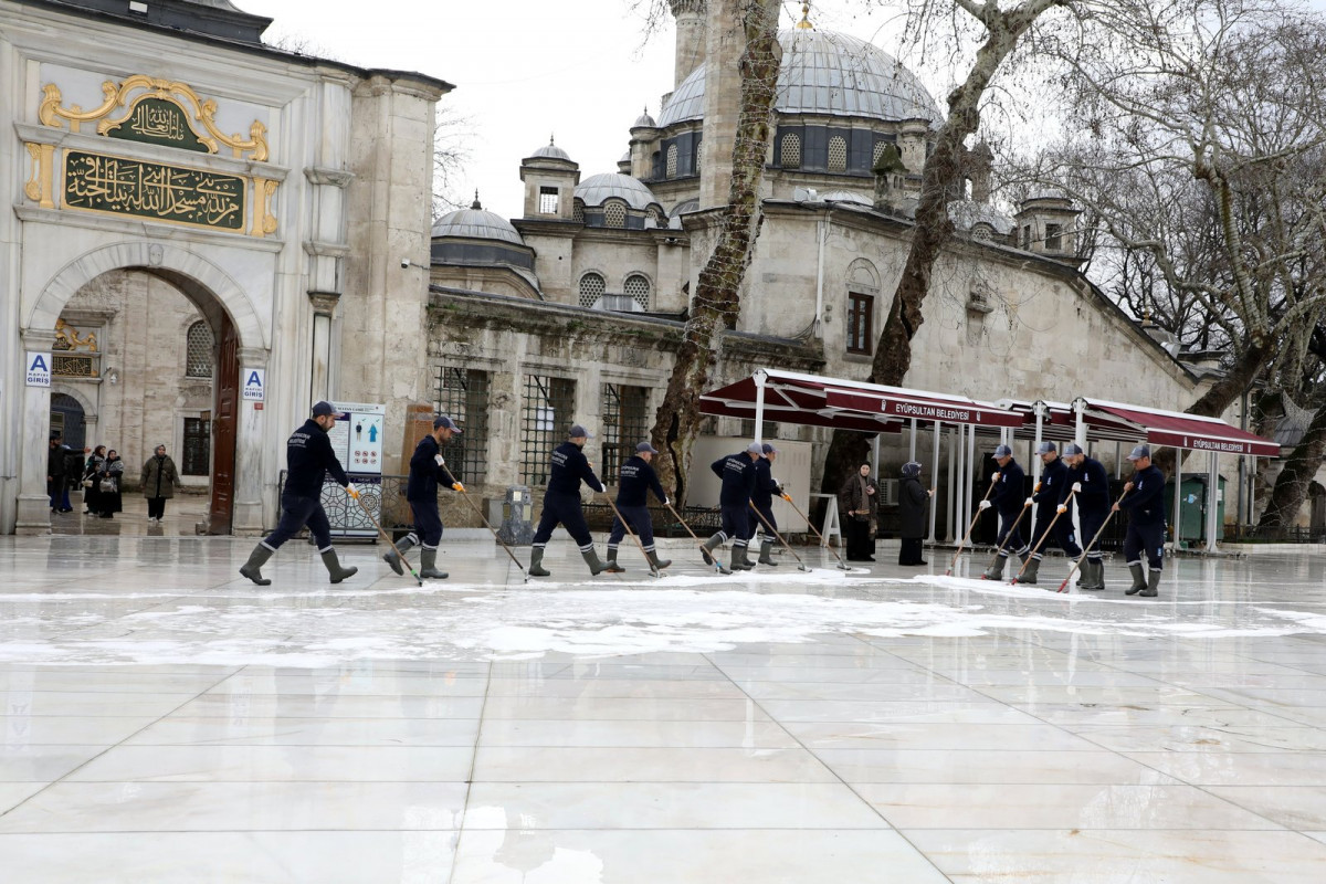 Hazırlıklar kapsamında, Ramazan ayının vazgeçilmez noktalarından biri olan Eyüp Sultan Camii içerisinde kapsamlı bir temizlik çalışması yapıldı. Cami içi en ince ayrıntısına kadar temizlendi. Temizlik çalışmalarında minber, mihrap, camlar, ayakkabılıklar ve kapılar silindi, halılar süpürüldü.