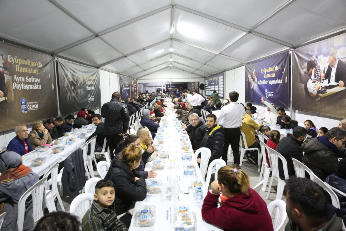 Eyüpsultan Belediyesi, oruçlarını Eyüsultan’da açmak için Türkiye’nin dört bir yanından gelen misafirlerini en güzel şekilde ağırlamak için Sultan Reşat Türbesi önünde Bahariye Caddesi üzerine kurulan etkinlik çadırında her gün 1000 kişilik iftar yemeği veriyor. Kurulan gönül sofralarında vatandaşlar aynı lokmayı paylaşarak Ramazan’ın bereketini birlikte yaşıyor.